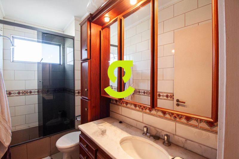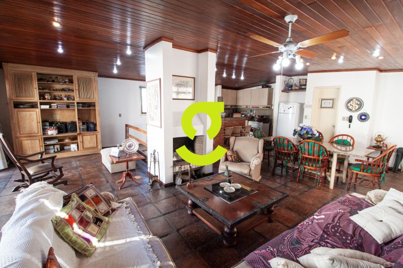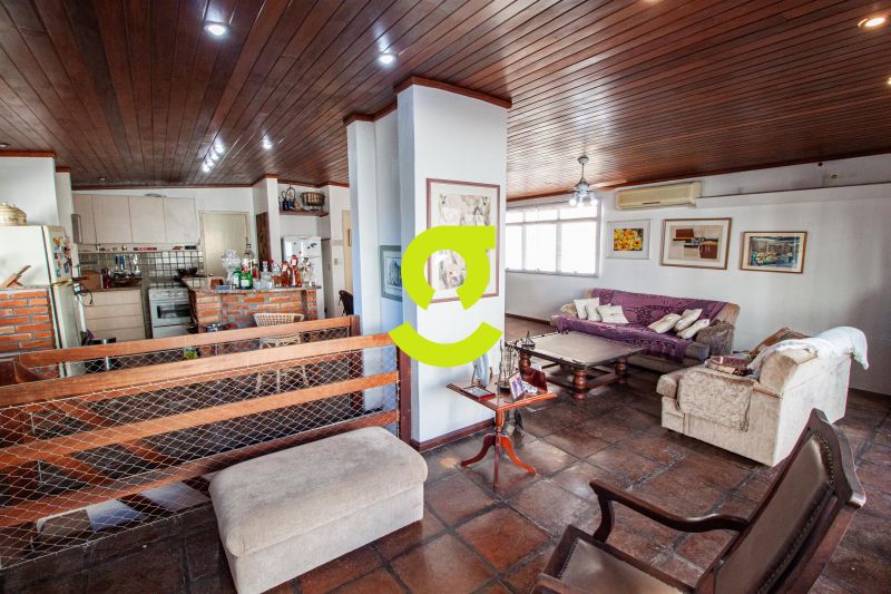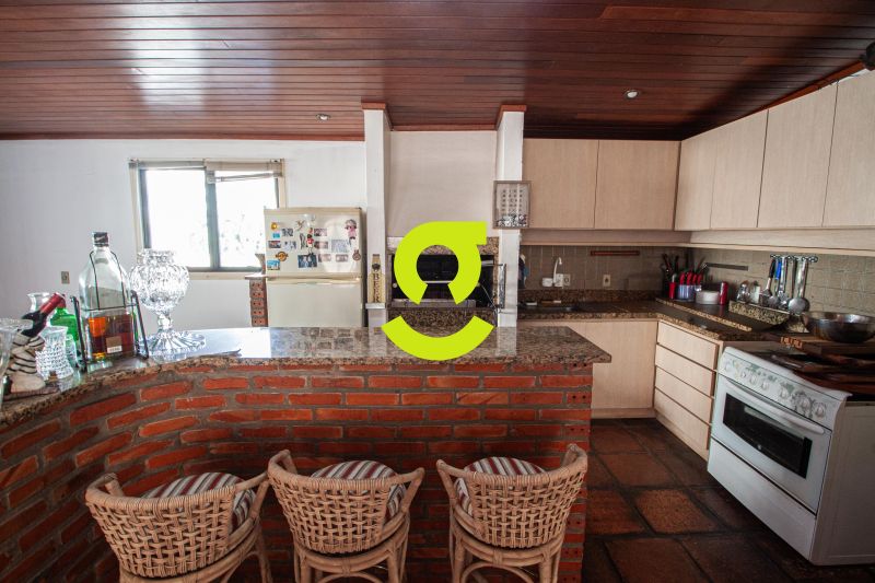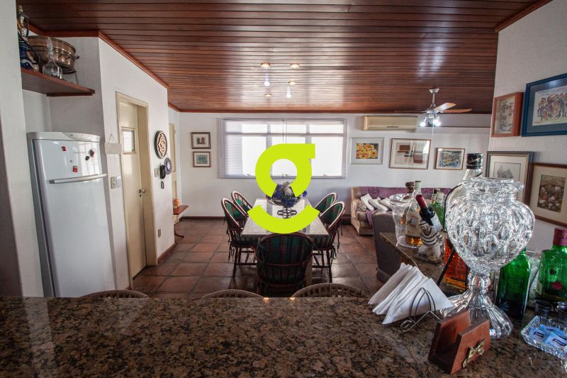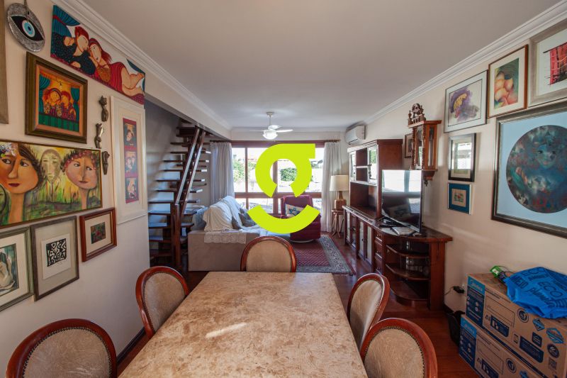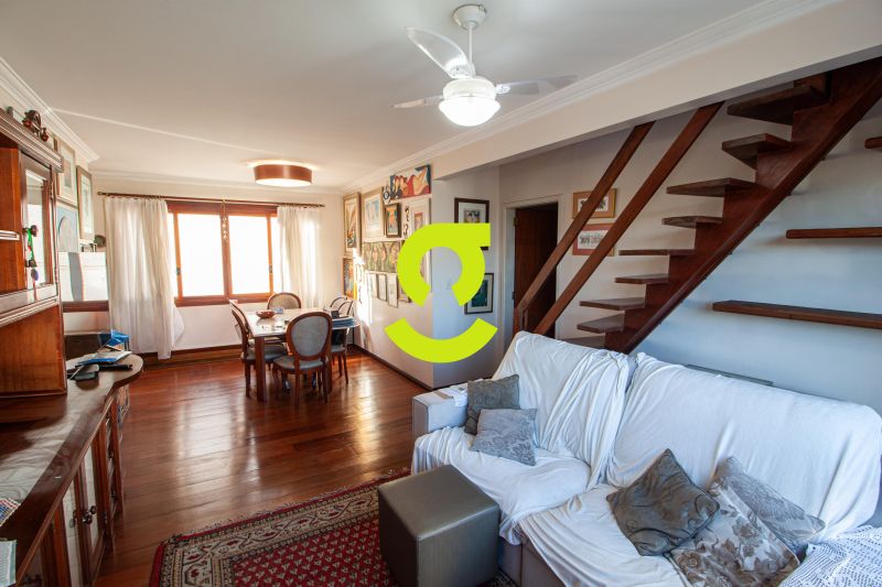 Ampla cobertura, semi mobiliada, living dois ambientes com ar condicionado, cozinha bem equipada, área de serviço com junker, dependência de empregada com WC aux, 3 dormitórios sendo uma suíte. 2º Pavimento com amplo espaço para confraternização, lareira, churrasqueira, 4 ambientes, terraço ensolarado, lavabo e 1 dormitório ou escritório. Duas vagas de garagem individuais e cobertas.