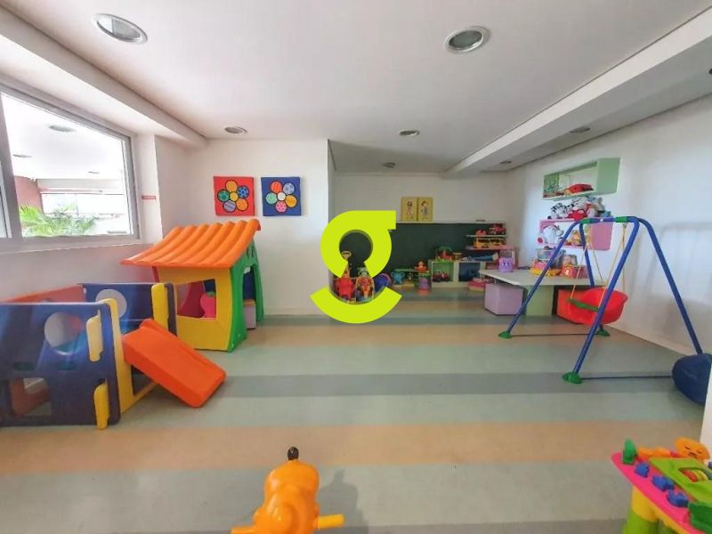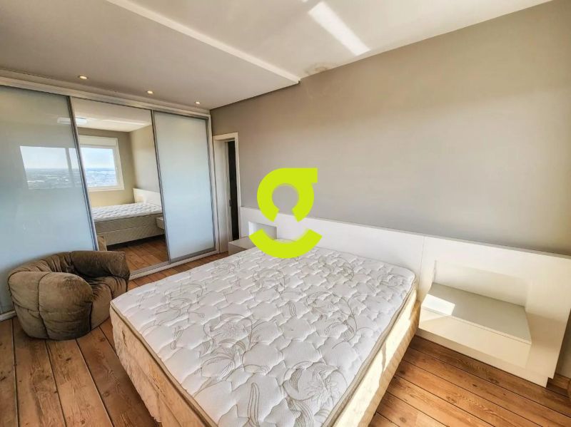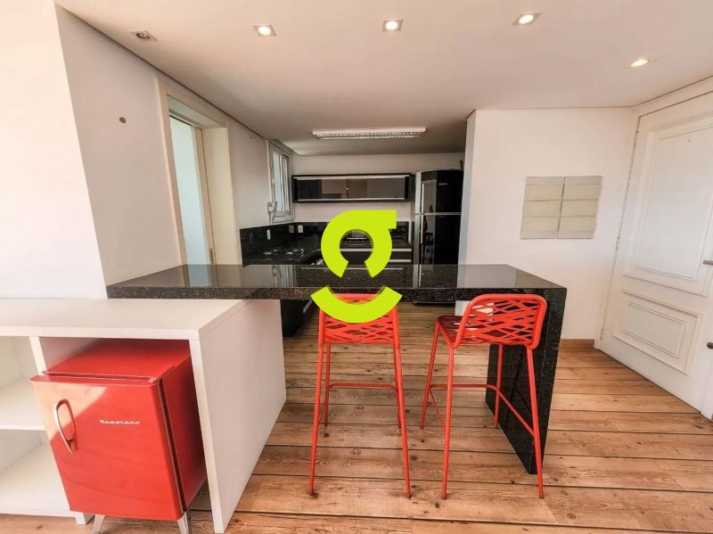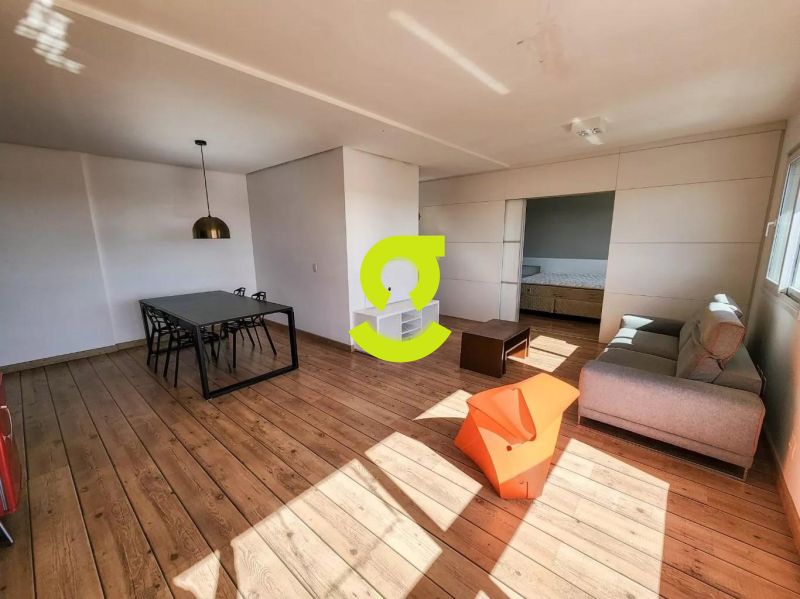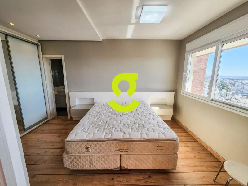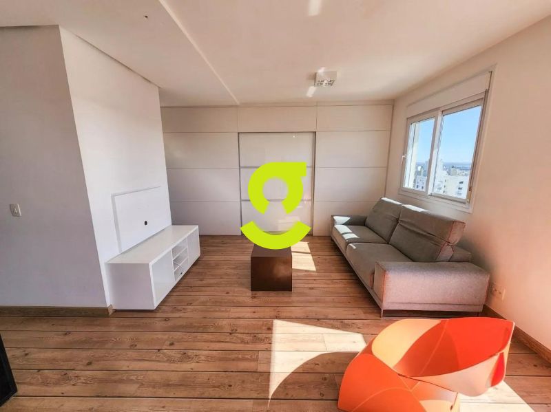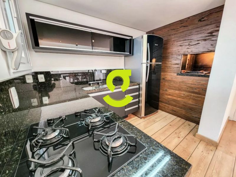 Excelente apartamento, 82m privativos, planta de 2 dormitórios, transformado em 1 dormitório, living estendido para 4 ambientes, semi mobiliado, andar alto, vista espetacular, banheiro social, ar condicionado, cozinha americana montada e com churrasqueira, área de serviço separada com junker e armários. 1 dormitório sendo uma suíte completa com armário, cama e ar condicionado. 2 vagas de garagem. Condomínio com infra estrutura completa de lazer, com portaria 24hs, salão de festa, playground, piscina, academia, brinquedoteca e elevador.