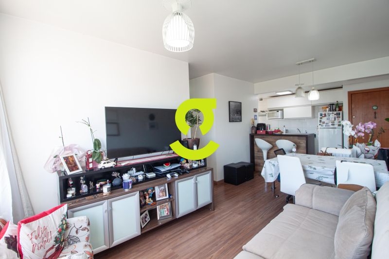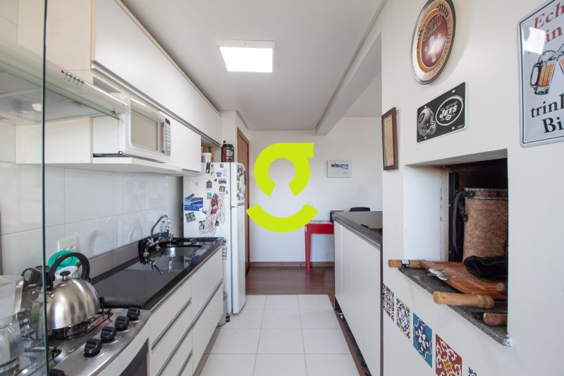 O living é integrado à cozinha e conta com churrasqueira, criando um ambiente prático para o dia a dia e para receber visitas. Imóvel semi mobiliado, com aquecedor de passagem e ar-condicionado já instalados.