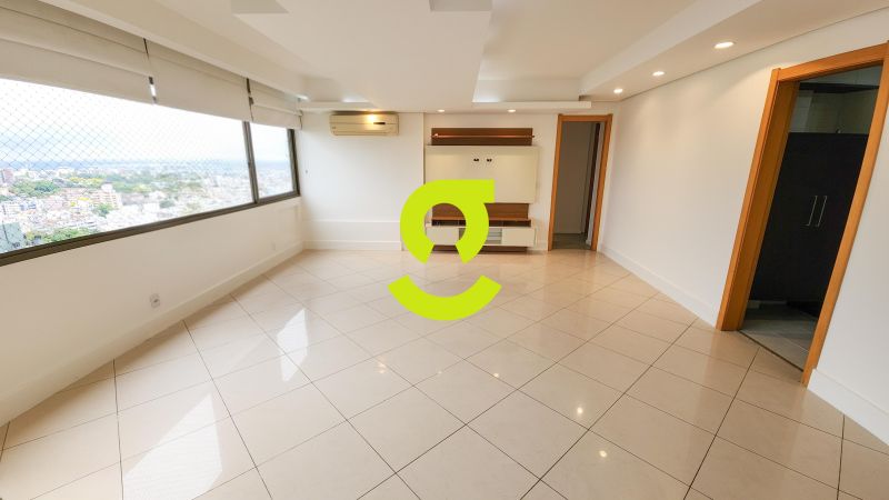 Ótimo apartamento, semi mobiliado, 107m privativos, andar alto, vista espetacular da cidade, living três ambientes c/ ar condicionado, copa e cozinha c/ móveis planejados, área de serviço ampla c/ aquecedor, banheiro AUX. 3 dormitórios, sendo uma suíte, todos dormitórios com ar condicionado. Duas vagas de garagem cobertas.