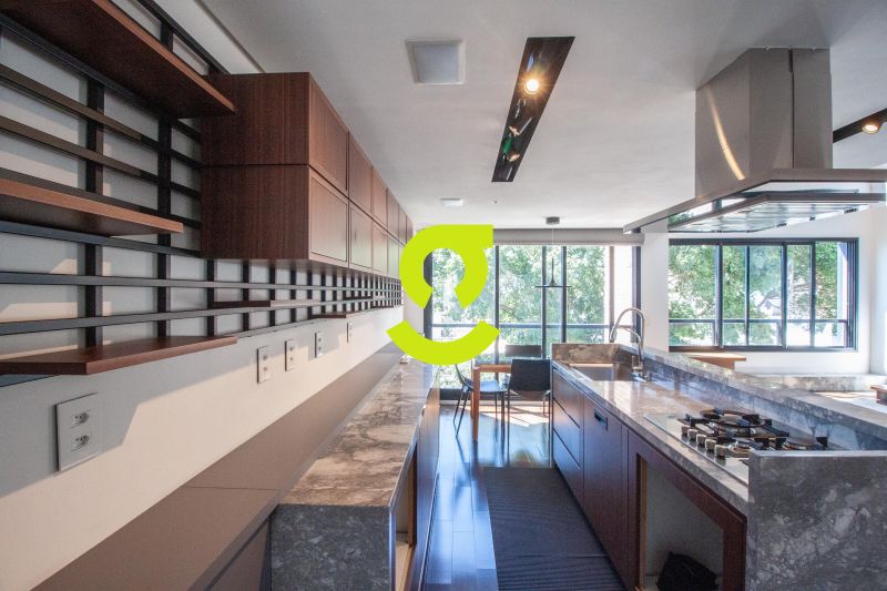 * **Cozinha integrada** com espaço para dois ambientes + **cozinha de apoio fechada**, pensada para receber sem abrir mão da praticidade;