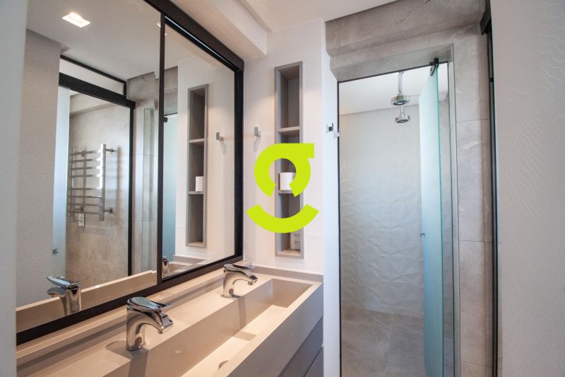 * **Banheiros sofisticados** com revestimentos premium e ducha dupla;