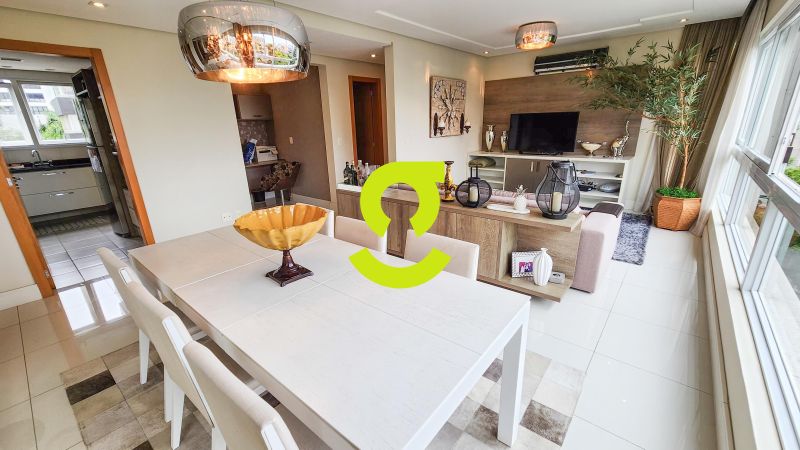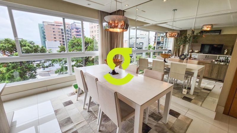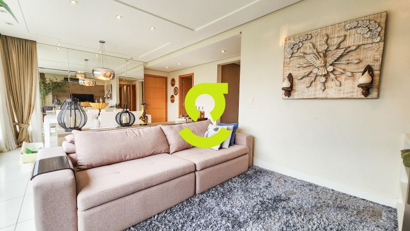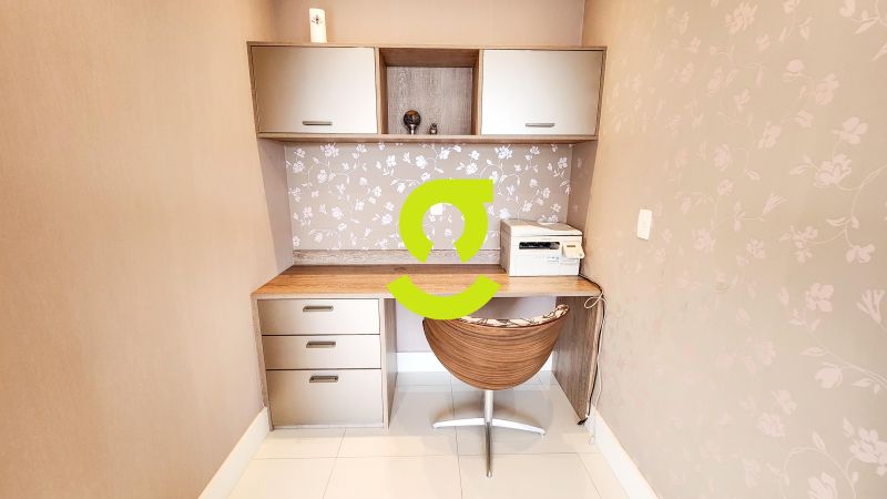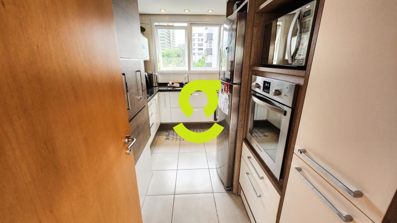 Excelente apartamento TOTALMENTE mobiliado, 112m privativos, andar alto, vista definida, living 3 ambientes com escritório, lavabo, cozinha montada e equipada, ampla área de serviço, 3 dormitórios completos, sendo uma suíte. Duas vagas individuais e cobertas.