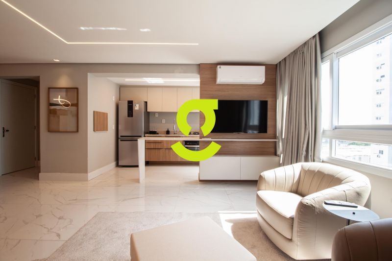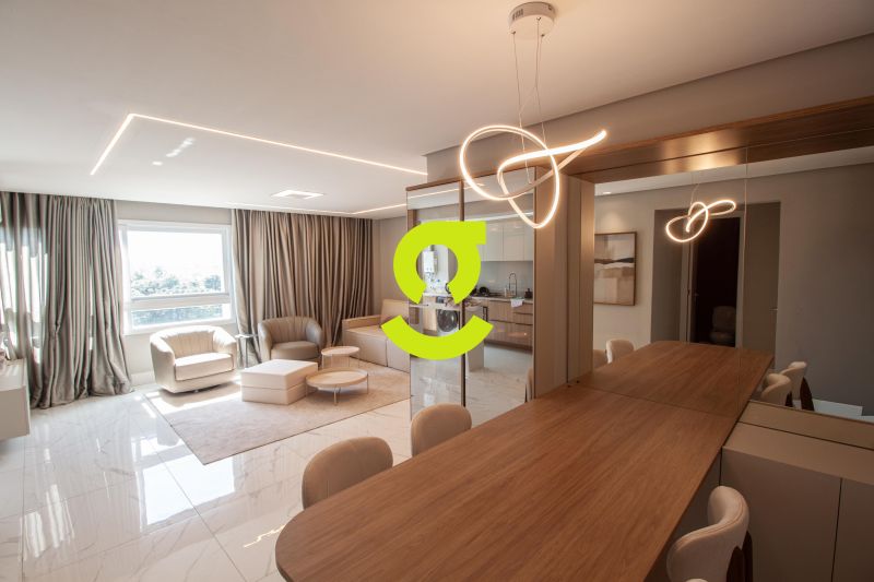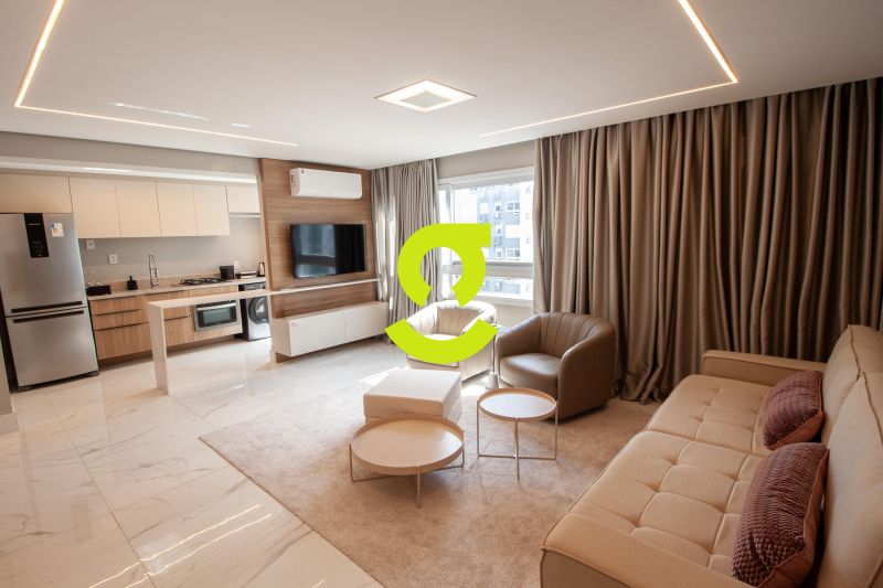 Espetacular apartamento FINAMENTE mobiliado, capa de revista, living três ambientes, lavabo, cozinha americana completa com churrasqueira, 2 dormitórios, sendo 2 suítes completas com ar condicionado e armários, 2 vagas de garagem cobertas.